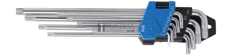 BGS technic Derékszögű kulcs készlet | extra hosszú + extra rövid | T-profil (Torx) T10 - T50 | 9 darabos - BGS 9375 (BGS 9375)