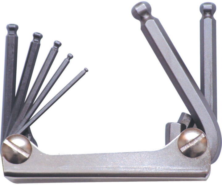 Gömbvégű hatszögkulcs készletek, zsebkés típusú. Metrikus 7 darabos készlet tartalma 2 5 3 4 5 6 8 és 10mm AF-colos 7 darabos készlet tartalma 3 32 1 8 5 32 3 16 1 4 5 16 és 3 8