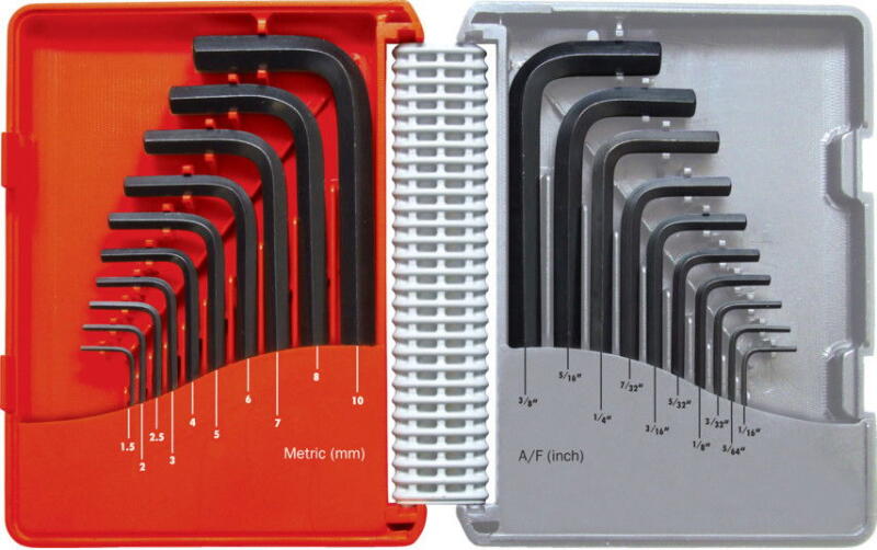 • Inch - 10 darabos készlet tartalma: 1/16", 5/64", 3/32", 1/8", 5/32", 3/16", 7/32", 1/4", 5/16" és 3/8".