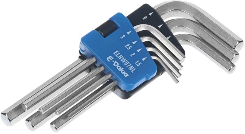 Az E-VALUE 9 darabos imbuszkulcs készlet egy elengedhetetlen eszközkészlet a precizitás és tartósság érdekében. Nikkelbevonattal készült a fokozott rozsdaállóság érdekében, és tartalmazza az 1,5, 2, 2,5, 3, 4, 5 és 6 mm méretű imbuszkulcsokat, így sokoldalú a szorítási és lazítási feladatokhoz. Kompakt mérete (47 mm x 17 mm x 96 mm, 74 g) biztosítja a könnyű hordozhatóságot és tárolást. A készlet egy kényelmes, felnyitható tartóban érkezik, amely lehetővé teszi a gyors hozzáférést és a kulcsok rendszerezését.
