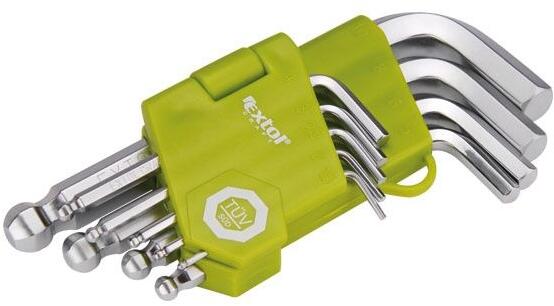EXTOL CRAFT 3 év imbuszkulcs klt. , rövid, Cr40 gömbfej, TÜV/GS; 9db, 1, 5-10mm, bliszteren (66000)