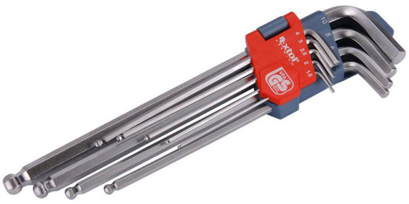 EXTOL Imbuszkulcs klt. , 9db, extra hosszú; gömbfej, 9db 1, 5-10mm, CV. , 95-237mm (8819312)