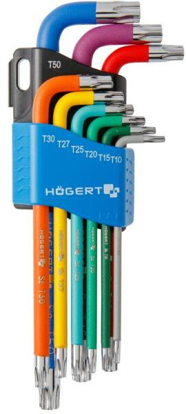 Högert Technik TORX kulcskészlet, színkódolással, S2 acél, T10 és T50 közötti méret 9 db / blister (HT1W817) (HT1W817)