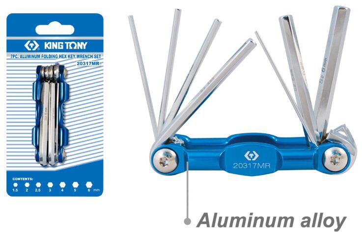 King Tony 20317MR kihajtható imbuszkulcs készlet, eloxált alu házban, kerékpárhoz.