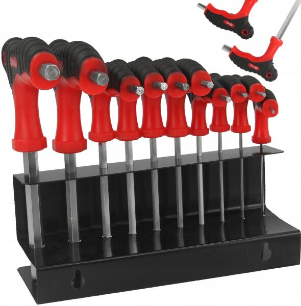Mar-Pol T-típusú Imbuszkulcs Készlet 2-10 mm robusztus Kulcskészlet Állvány (M66435)