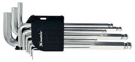 Matrix 11233 imbus csavarkulcs készlet, CrV acél, 1,5-10 mm, 9 db, rövid, oxidált, HEX kötőelemek be- és leszerelésére szolgál. A hatszögletűeket leggyakrabban eurobútorcsavarok meghúzására és kerékpárjavításra használják. A billentyűk L-alakú formája lehetővé teszi, hogy hosszú végüket munkadarabként használhassa a nehezen elérhető helyeken történő munkavégzés kényelméért. Jellemzők: