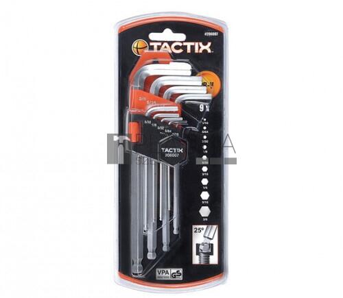 Tactix 9 részes gömbvégű, hosszú imbusz kulcskészlet - 206005 (206005)