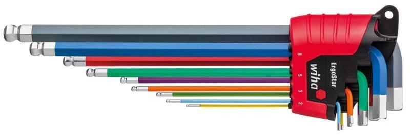 WIHA 41483 ErgoStar Gömbvégű Imbuszkulcs Készlet - Hosszú, 9 Részes, SW1, 5-10, Színes